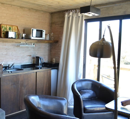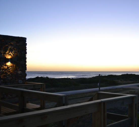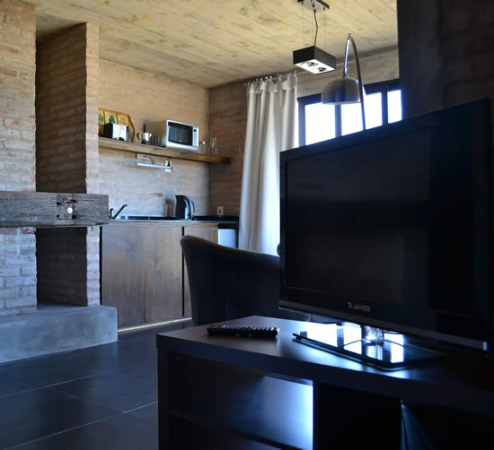 El apartamento 102 de Casa del Mar se destaca por su amplia estufa a leña frente a la cama. Es el ideal para una estadía durante el invierno en La Paloma. Disfrutable también en verano, ya que cuenta con aire acondicionado y su terraza privada.